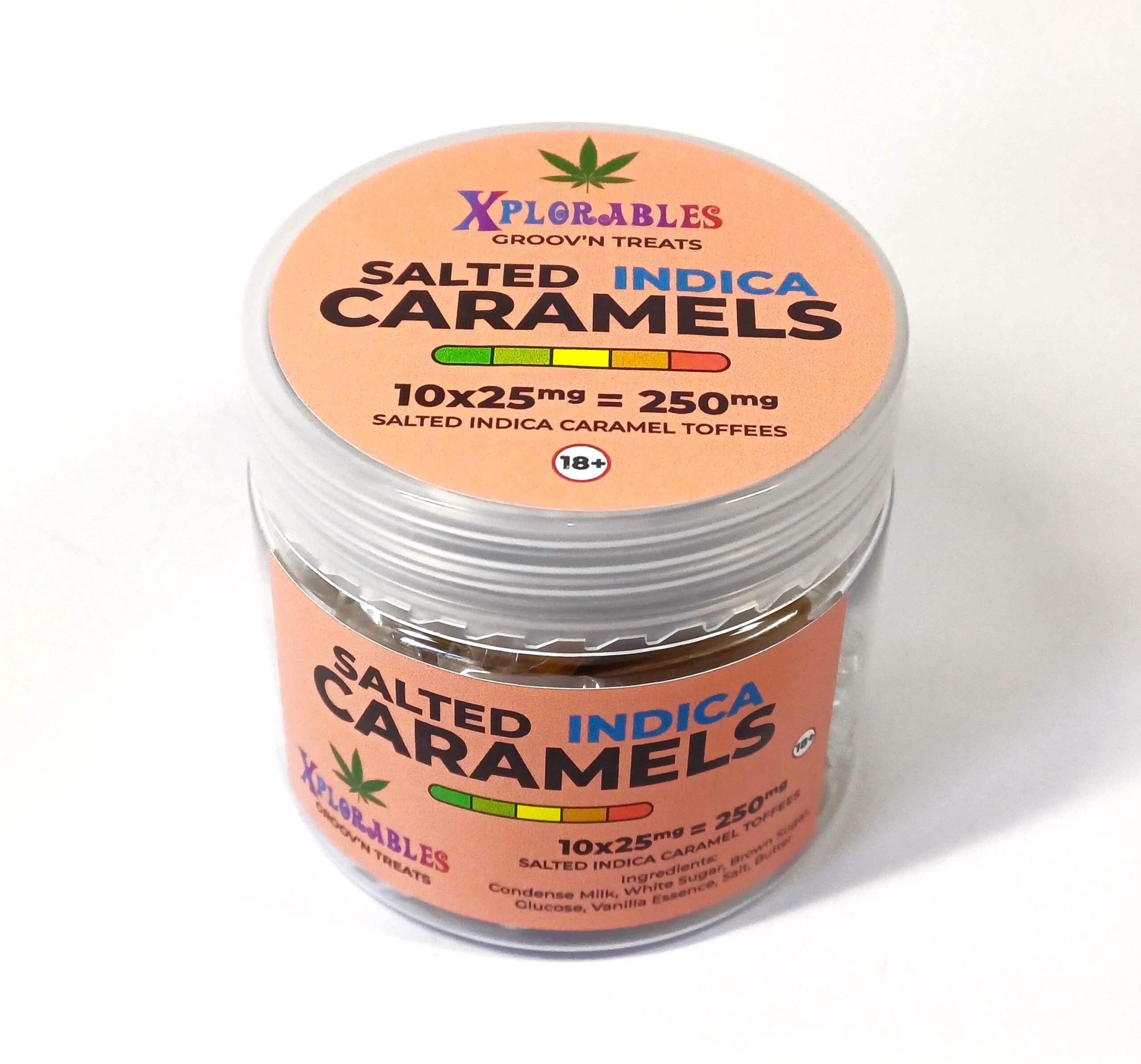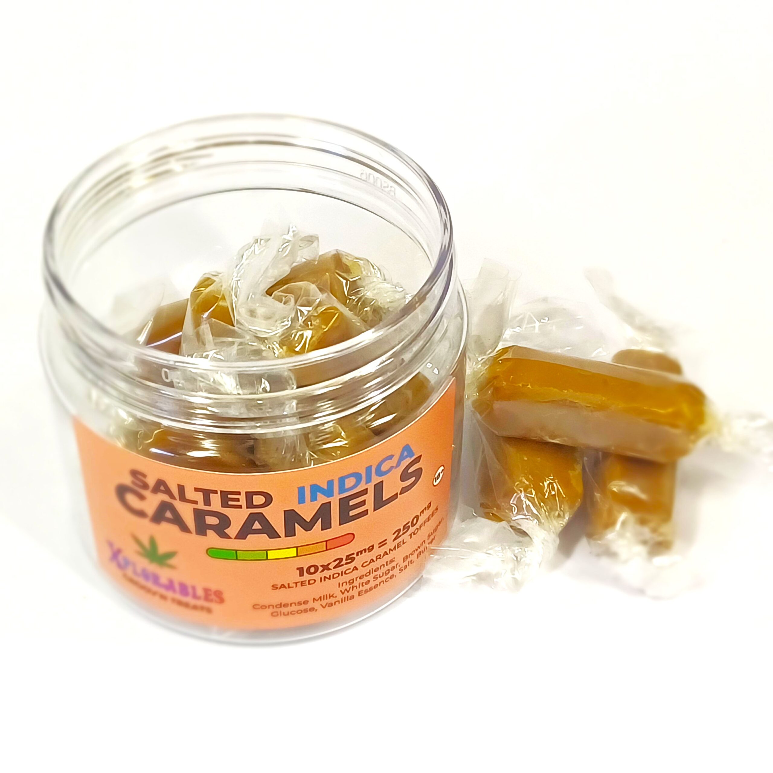 - Introducing our decadent Indica Salted Caramel Toffees, a luxurious treat infused with 25mg of pure Indica goodness in every irresistibly chewy bite. These toffees offer a blissful and tranquil experience for those seeking ultimate relaxation.